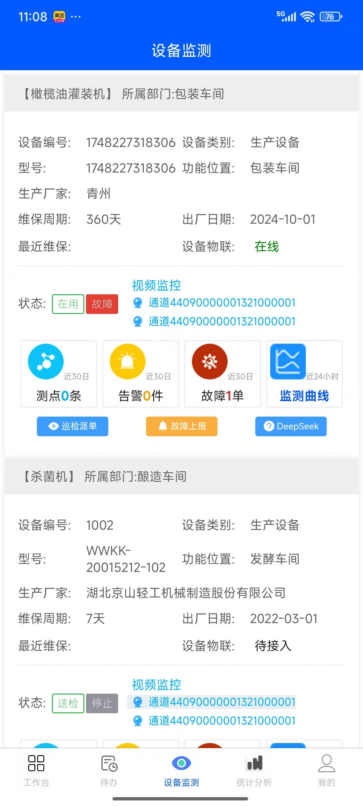 宜联设备管家提供了设备实时监测功能,在移动端,用户可以查看部门管理设备树,各部门所属设备在线实时监测模块,包含设备的使用状态、运行状态监测;设备的实时数据运行曲线、设备测点、告警、工单监测和在线巡检派单、故障上报、AI分析,远程处置,直接移动端上报设备故障、下发任务工单、业务指令。