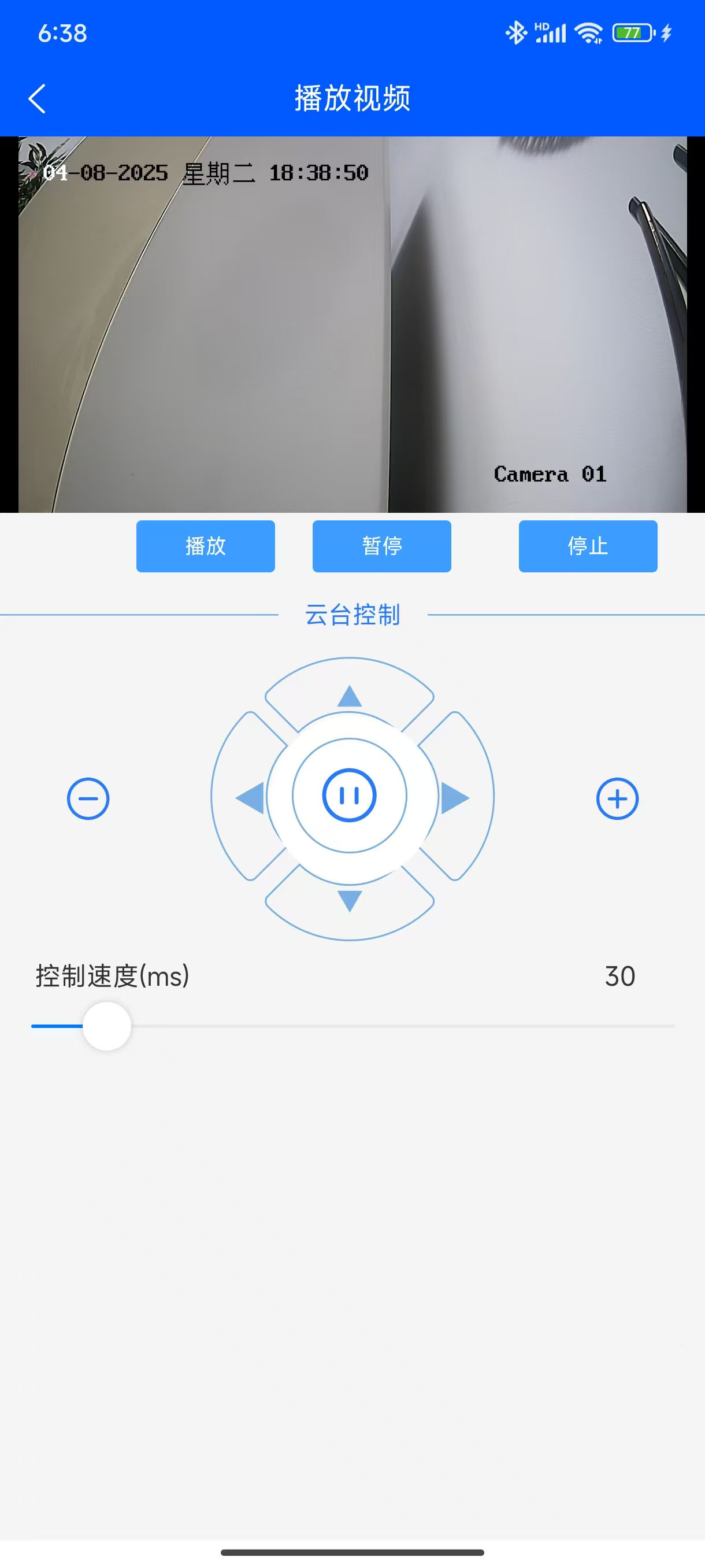 视频播放界面提供了摄像头云台控制按钮,点击相应的按钮可以远程控制摄像头的移动、拉升,调整摄像头的视觉范围(备注:摄像头的云台控制只针对支持云台操作的摄像头有效)。