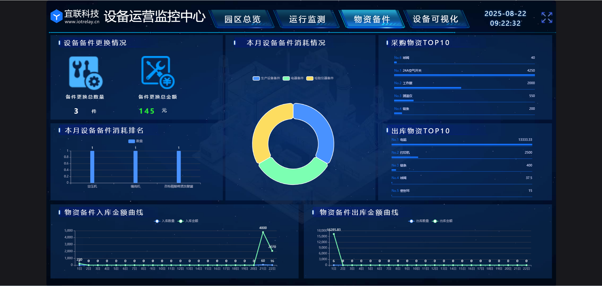 物资备件:物资备件采购、物资备件出库、物资备件消耗统计分析,常用备件消耗排名。