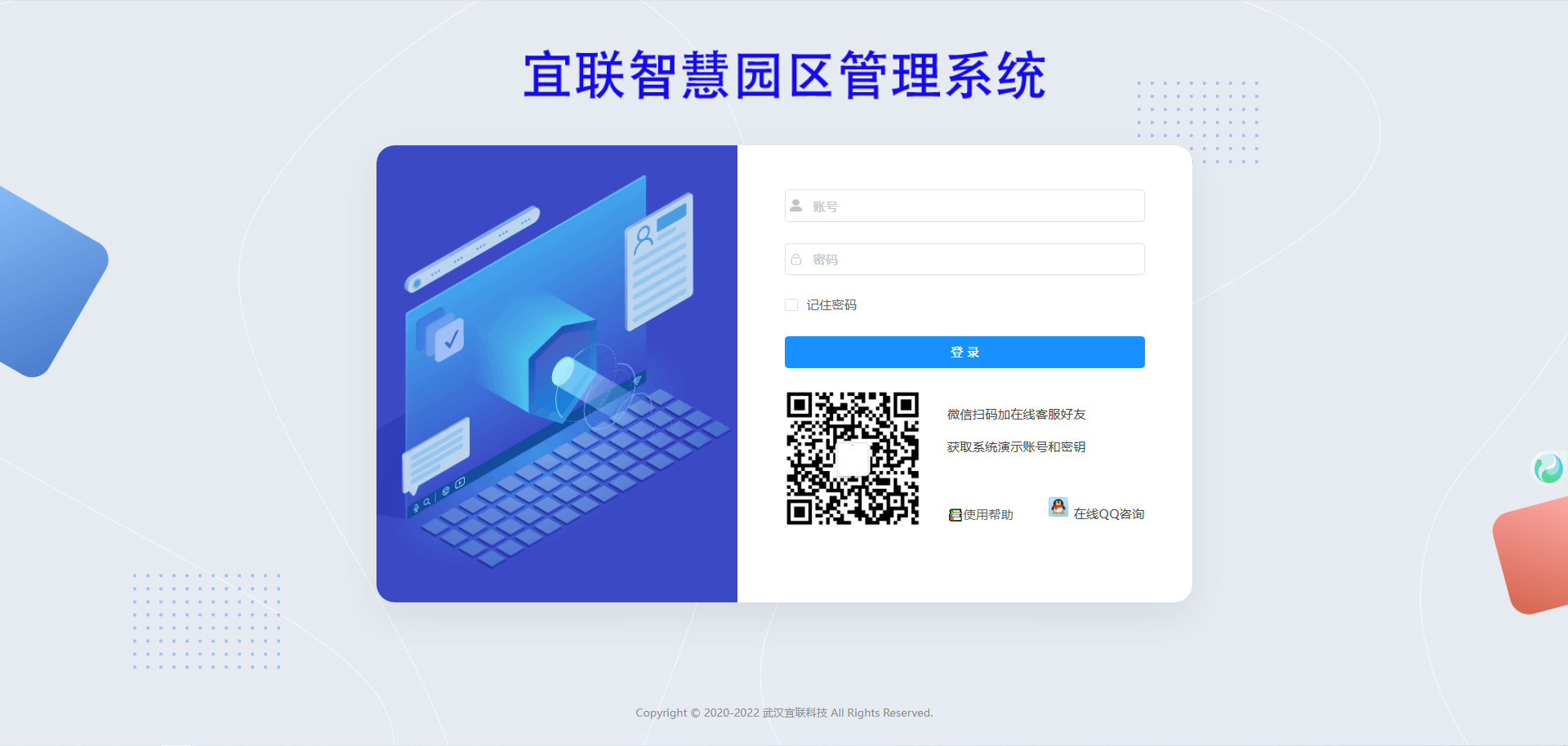 输入本系统平台访问地址打开宜联智慧园区系统的登录界面如图: