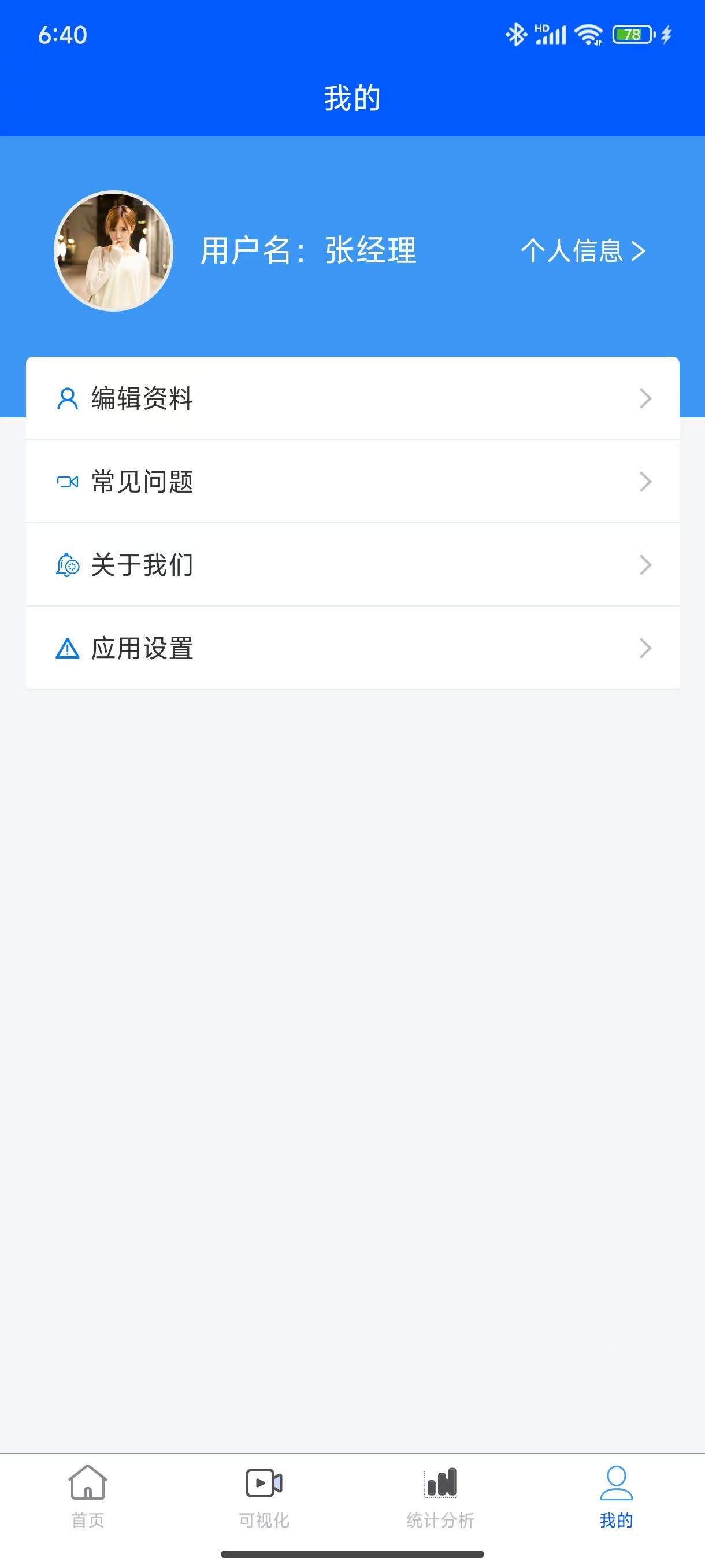 上的“我的”部分,提供了登录用户的信息展示、登录用户个人账户密码修改、个人资料管理、