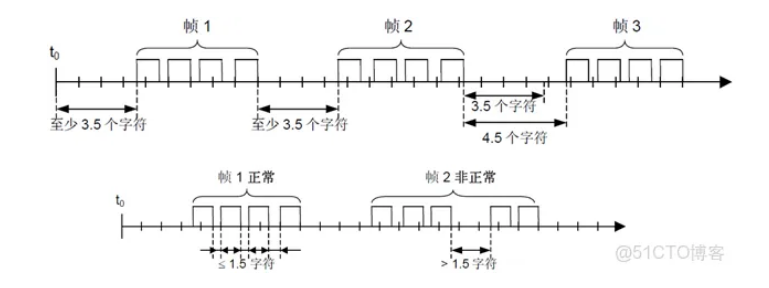 由于Modbus数据帧中没有起始位和停止位,所以无法通过特定的数据来区分两帧数据,需要通过时间间隔来区分,Massage Delimiter是指间隔时间,譬如协议中规定信息帧发送至少要有3. 5个字符时间的停顿间隔。即在一个数据帧的最后一个字符传输完成之后,需要至少3.5个字符时间的停顿标定数据帧的结束,一个新的数据帧可在此停顿之后开始。如果一个新消息在小于3.5个字符时间内接着前个消息开始,接受的设备将认为它是前一数据帧的延续,这将导致CRC校验出错。同时整个数据帧必须作为一连续的流传输。如果在帧完成之前有超过1.5字符时间的停顿时间,接受设备将刷新不完整的数据帧从而认为存在丢包现象。