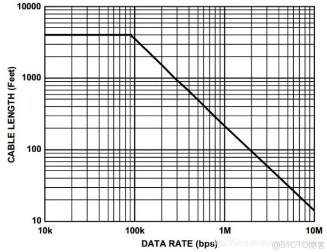 使用高数据速率时,只能使用较短线缆。使用低数据速率时,可以使用较长的线缆。对应低速率应用,电缆的直流电阻通过在电缆压降增加了噪声裕量,限制了电缆长度。使用高速率应用时,电缆的交流效应限制了信号质量,限制电缆长度。