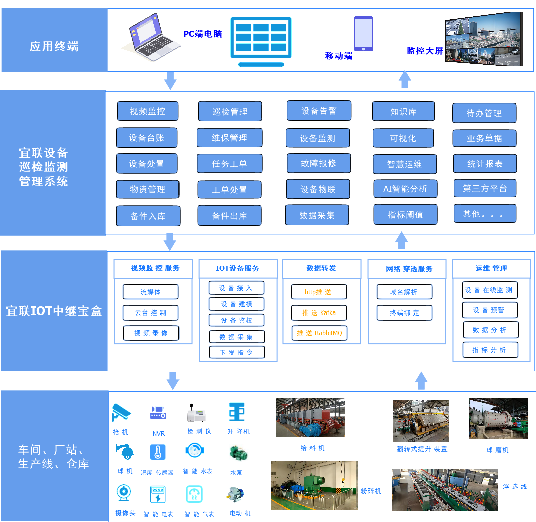 铅锌矿厂管理层根据武汉宜联科技提出的生产改进措施管理效能升级方案,首先上线了宜联设备巡检监测管理系统来监管各生产车间、厂站生产和生产设备运行情况,具体措施如下: