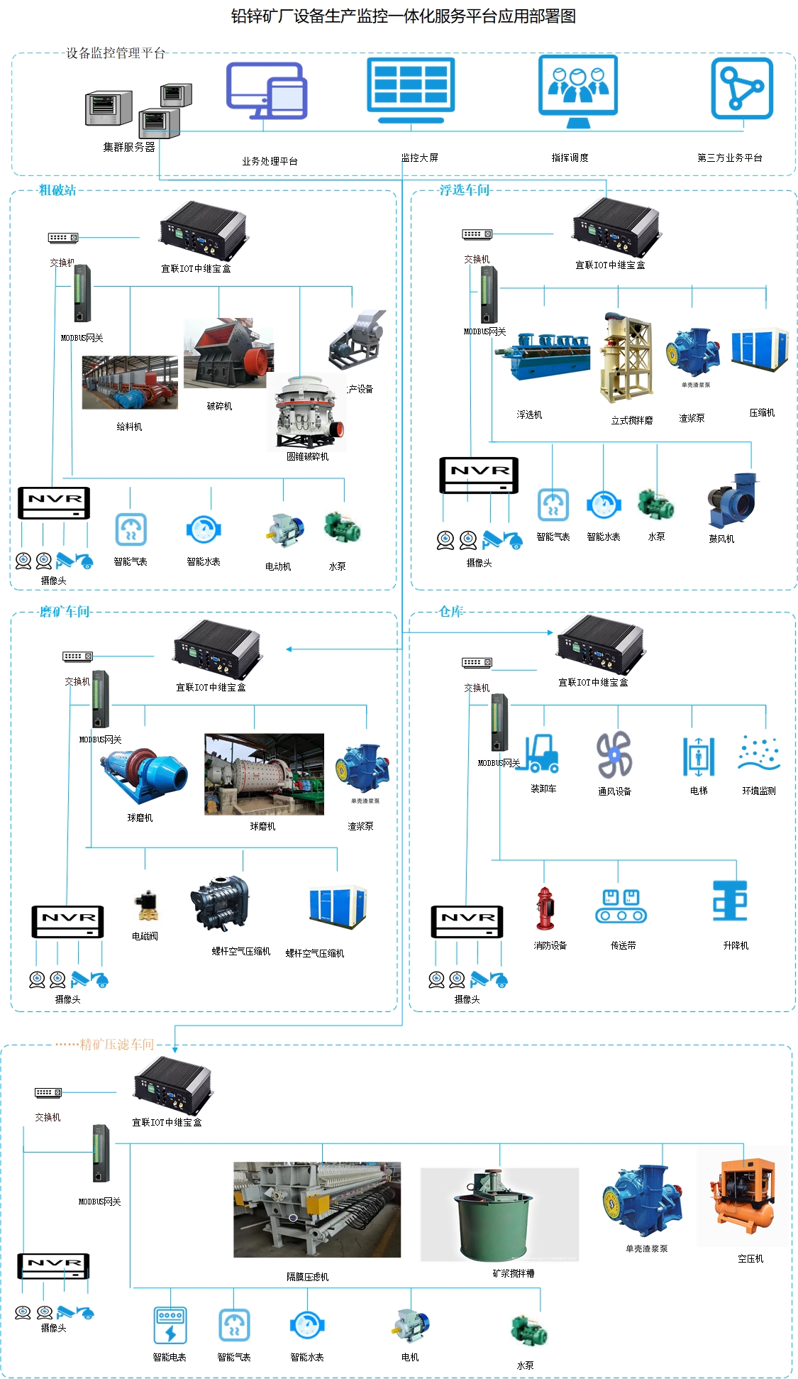 铅锌矿厂设备生产监控一体化服务平台应用部署图: