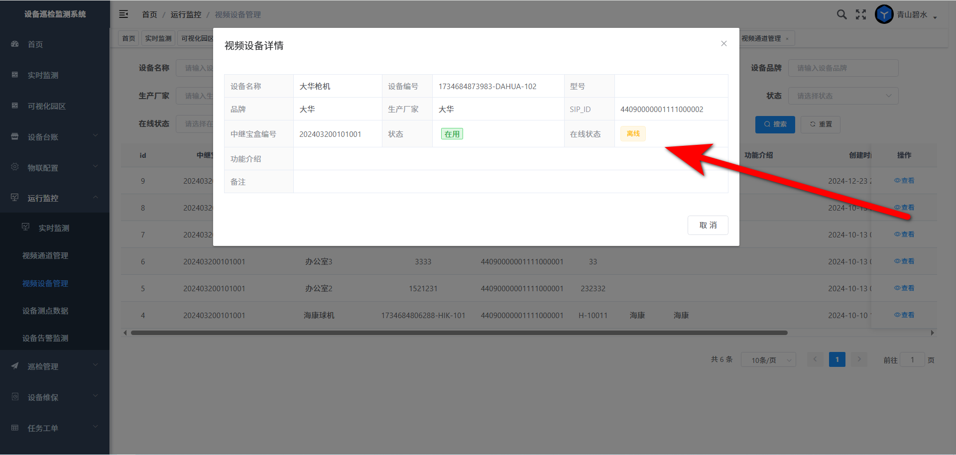 点击“查看”打开视频设备详情