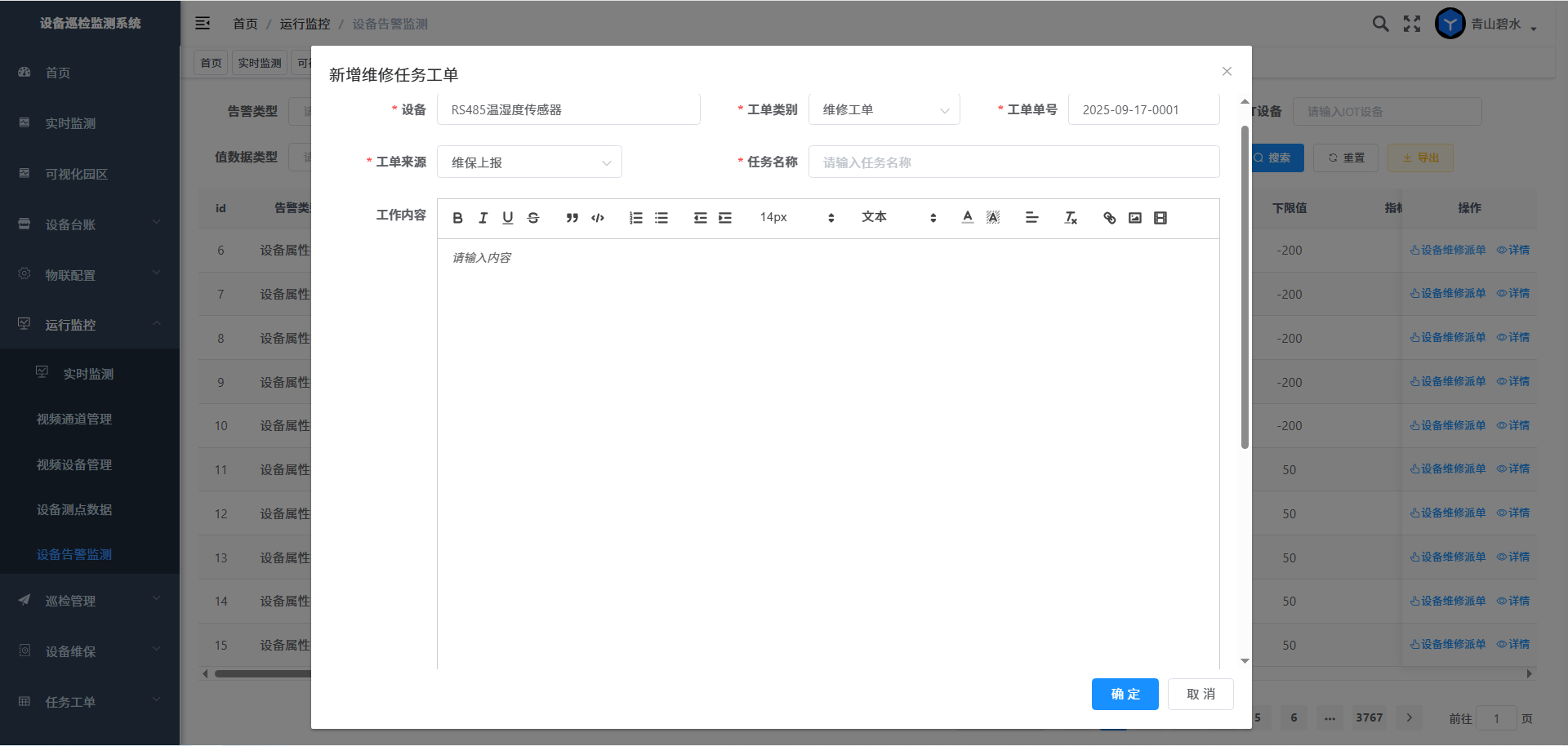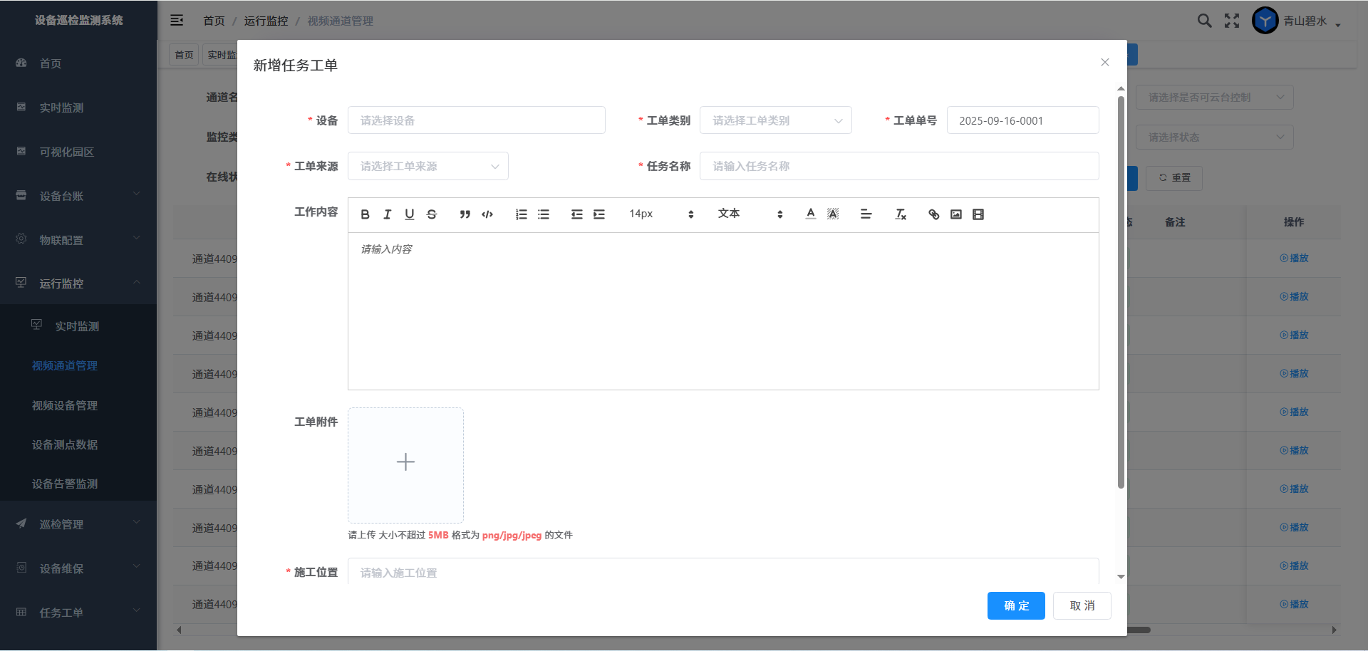 点击“在线巡检”按钮,则巡检任务派单界面,可以在线填写任务工单