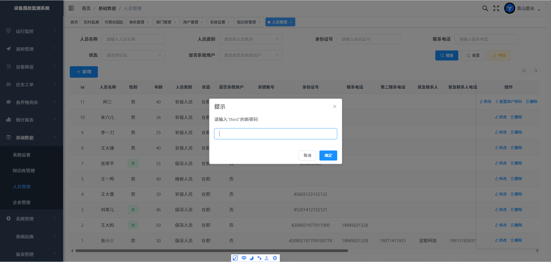在第三方人员管理界面,同时可以重置第三方人员系统登陆密钥,此功能常用于第三方人员忘记系统登陆密码的情况。
