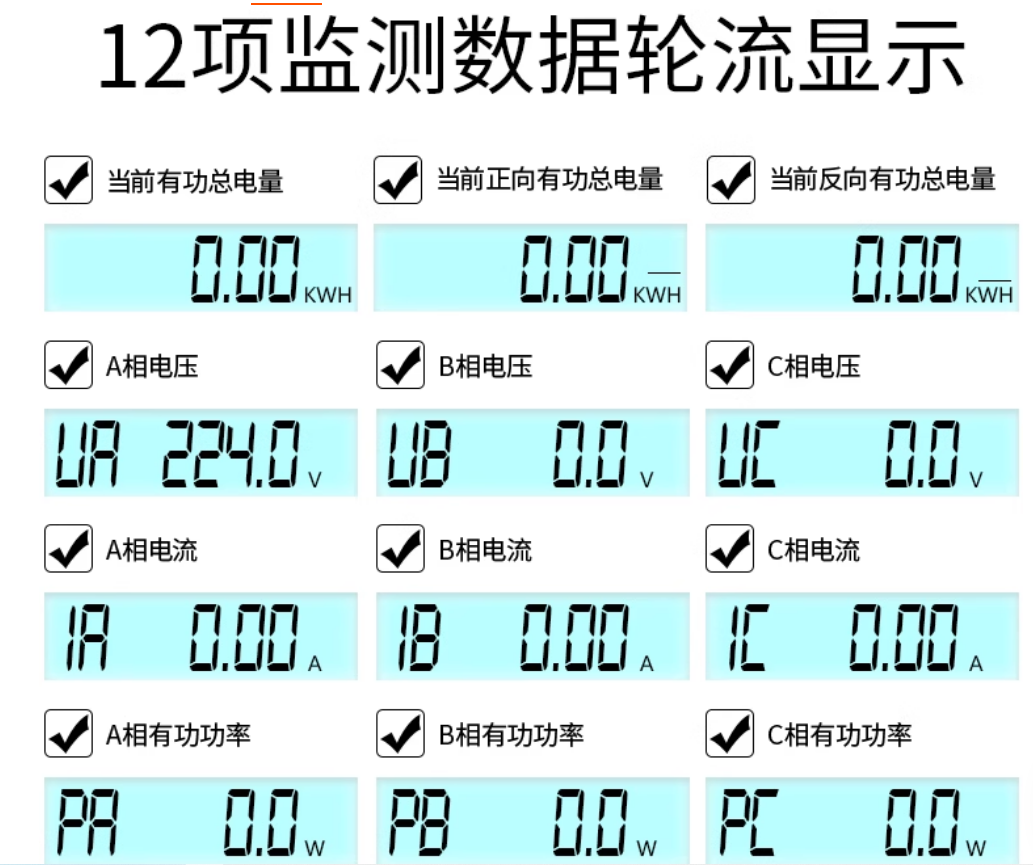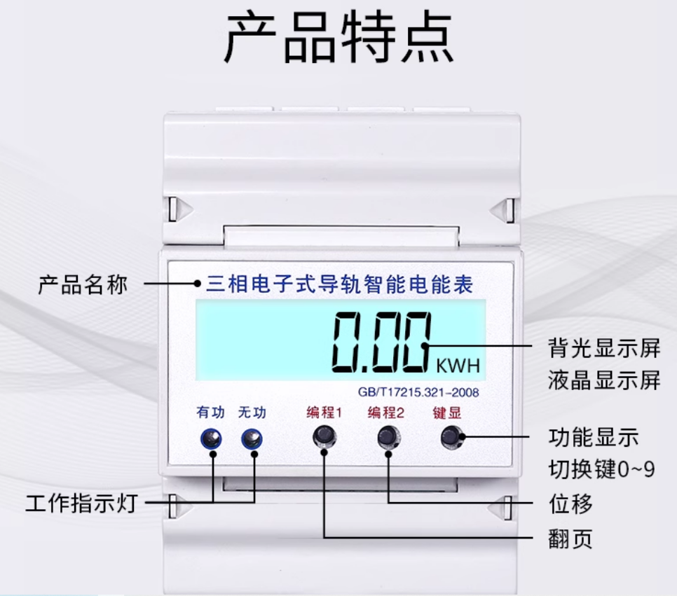 1.可通过按键设置电表倍率、波特率、校验位以及通讯ID地址2.采用微电子技术与大规模集成电路,应用数字采样处理技术及SMT艺等技术